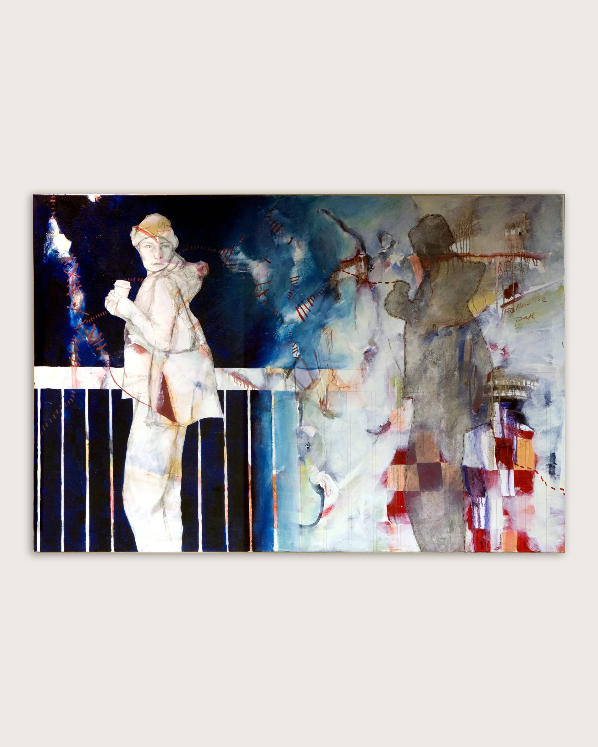...And Heard Footsteps Behind Her...Kristin Bauer48” x 48”Oil, graphite, and pastel on canvas Artist Bio