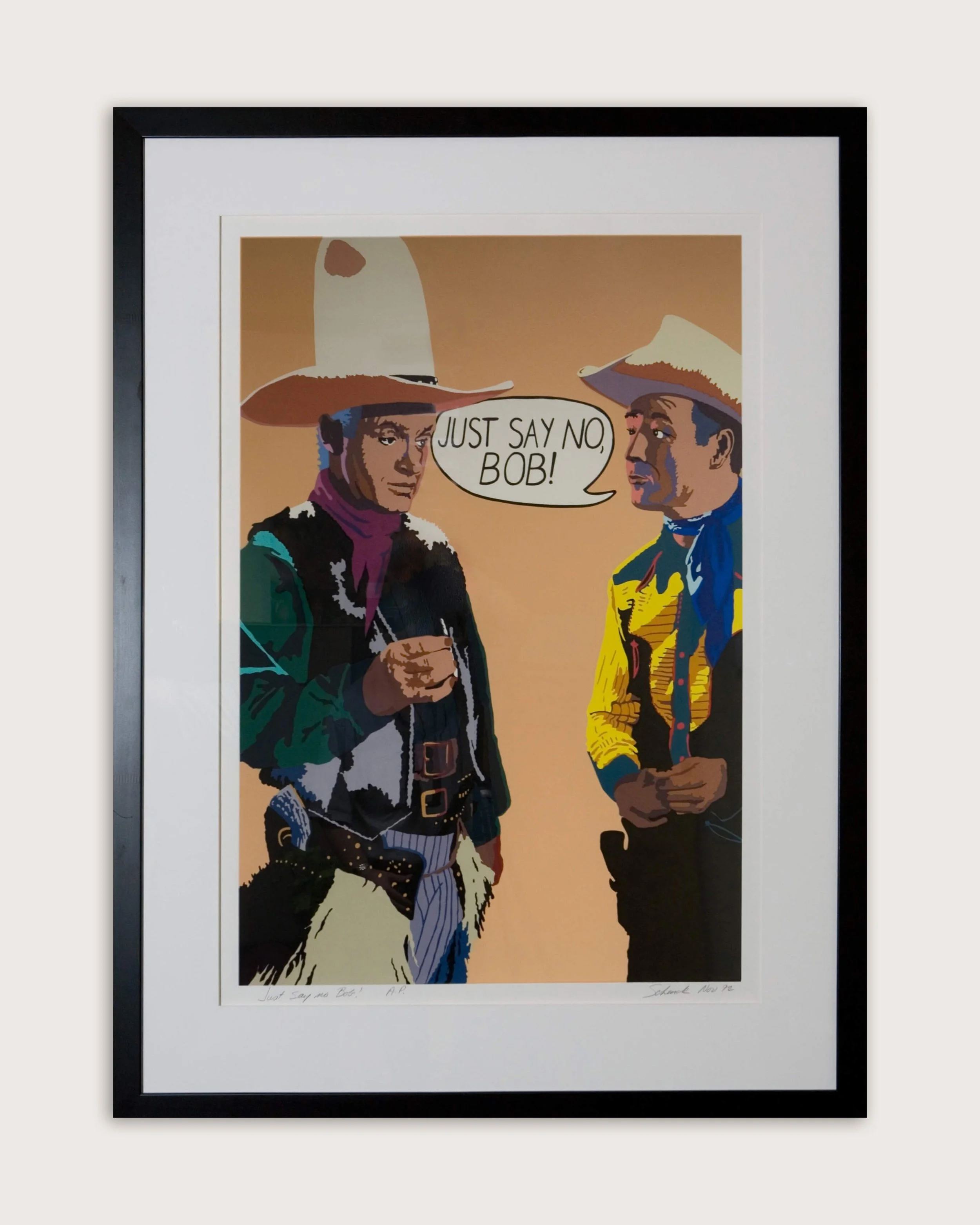 Bill Schenk is an American painter and printmaker whose work explores the energy and spontaneity of contemporary Western culture through a Pop Art lens. Schenk’s signature style combines bold colors and graphic design with a playful sense of humor, often subverting familiar iconography and images of the American West. He is renowned for his striking depictions of cowboys, rodeo queens, and highway billboards, imbuing these symbols with a sense of nostalgia while also celebrating their ongoing relevance in contemporary society. With a career spanning over three decades, Schenk has exhibited his work extensively throughout the United States and beyond, cementing his status as a leading voice in the contemporary Western art scene.