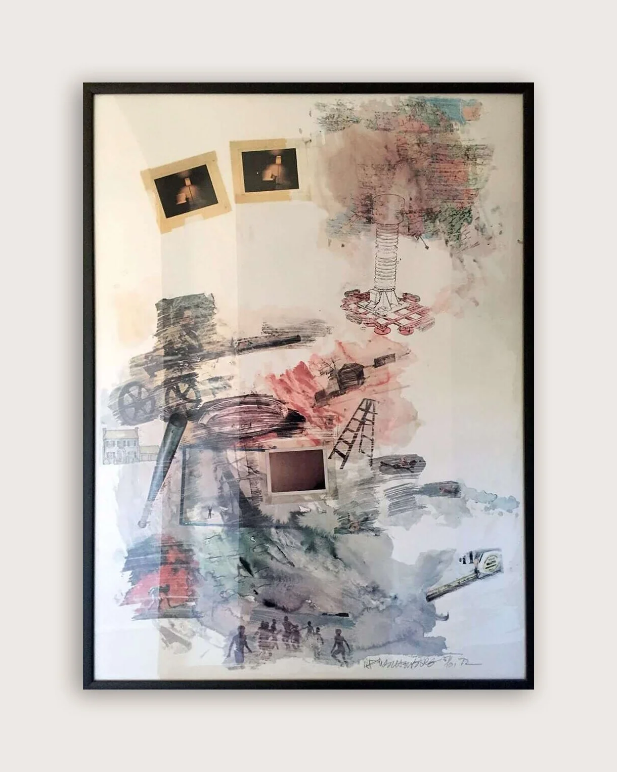 Robert Rauschenberg was an American artist who lived from 1925 to 2008. He was a pioneer in the art movement known as Neo-Dadaism and he is considered one of the most influential artists of the 20th century. Rauschenberg was known for his innovative approach to art, often incorporating found objects and materials in his work such as newspaper clippings, metal scraps, and photographs. He was also known for his experimental approach to printmaking and his use of silkscreen techniques. His most famous work is "Monogram," a mixed media piece that includes a stuffed goat with a tire around its waist. Rauschenberg's work challenged traditional ideas of what art could be and paved the way for future movements such as Pop Art and Conceptual Art.