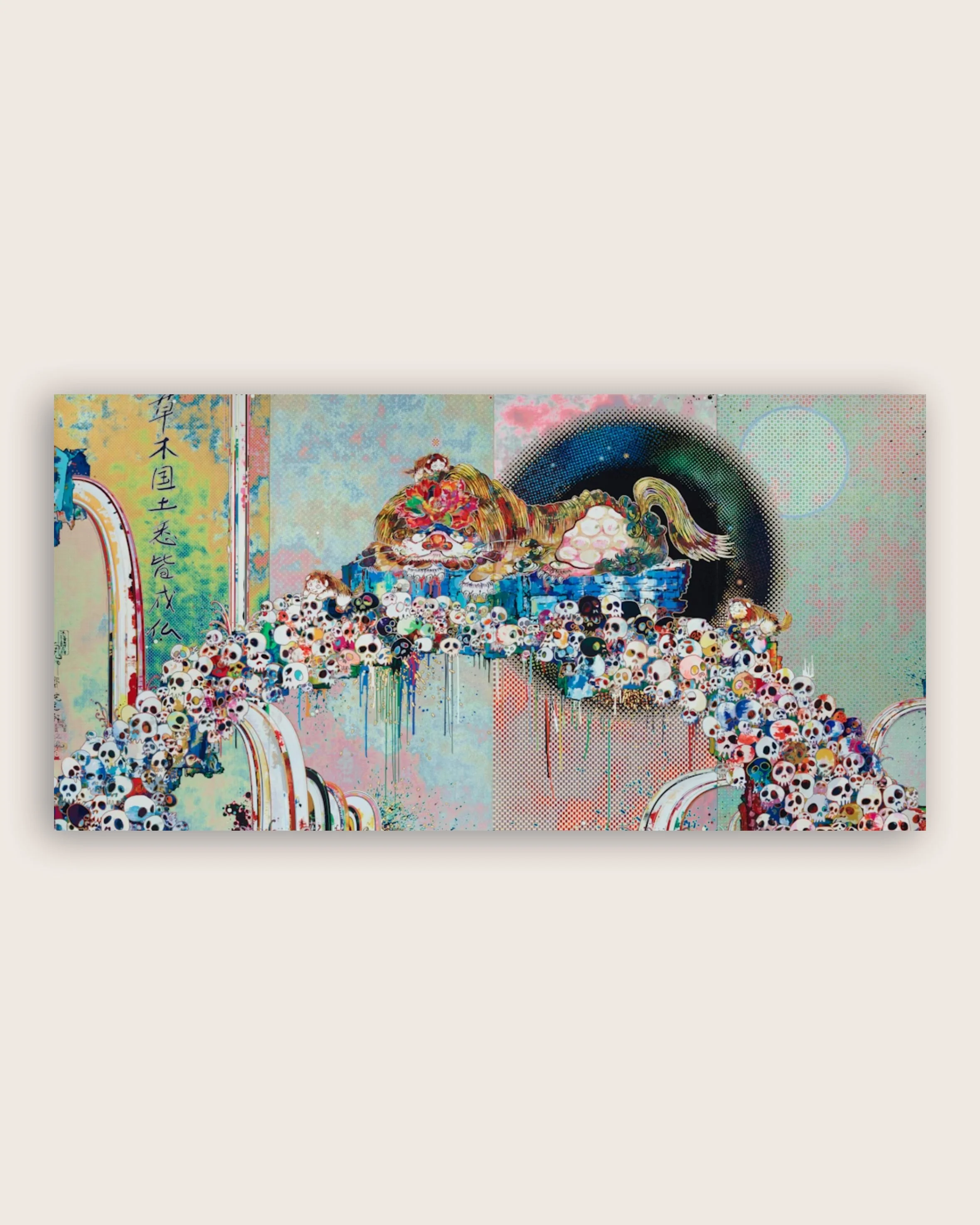 Takashi Murakami is a Japanese contemporary artist known for his psychedelic, anime-inspired works. He combines traditional painting techniques with modern pop culture icons to create vibrant, larger than life pieces. Murakami's art often plays with the themes of consumerism and the relationship between mass culture and fine art. He is credited as one of the pioneers of the Superflat movement, which has become a defining feature of contemporary Japanese art. Many of his works have been exhibited in prominent museums and galleries across the world, including the Museum of Modern Art in New York and the Guggenheim Bilbao.